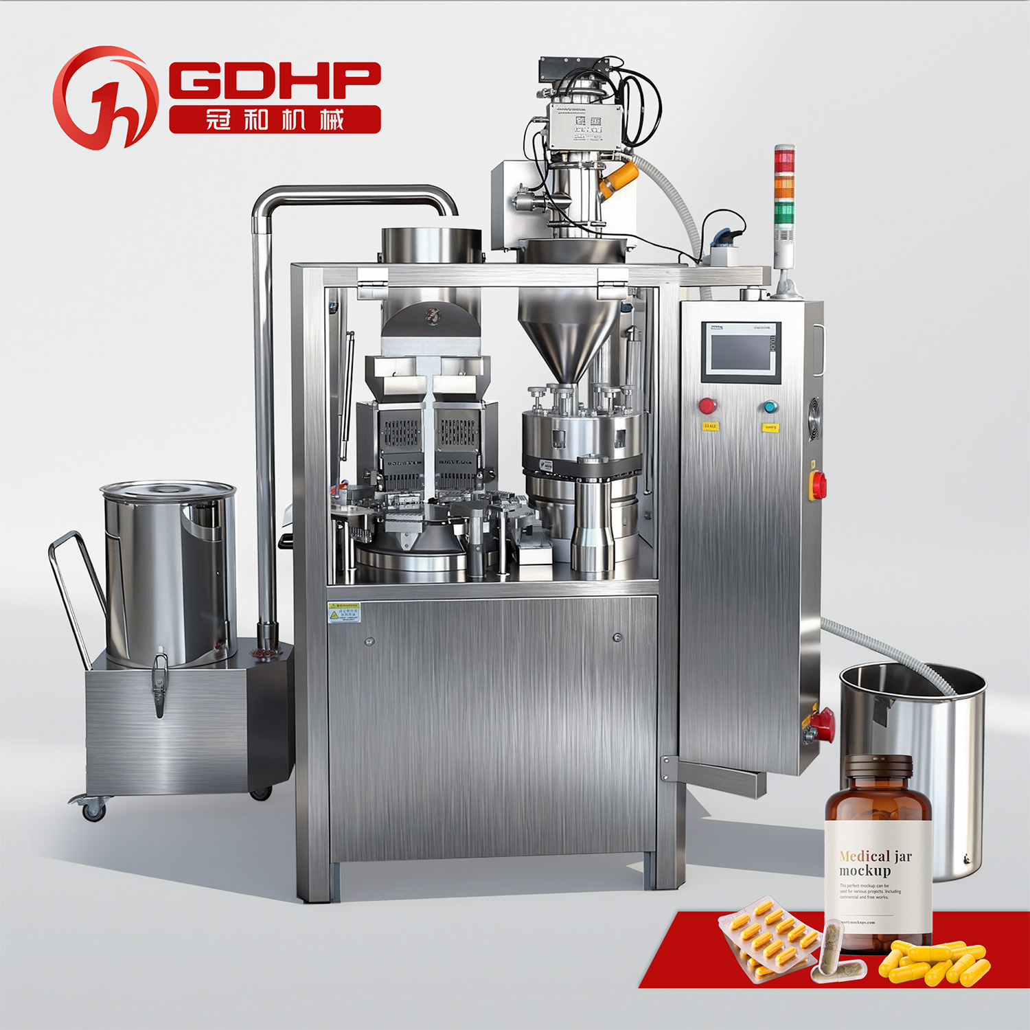 V. مزودة بأجهزة حماية شاملة لكل من الأفراد والآلات—بما في ذلك آلية إيقاف تلقائي \nعند نقص المواد—تضمن الآلة تشغيلًا ثابتًا، \nآمنًا وموثوقًا. إنها تمثل المعدات المثالية \nللمصنعين الصيدلانيين ومنتجي المكملات الصحية \nالمعنيين بإنتاج تركيبات الكبسولة الصلبة.