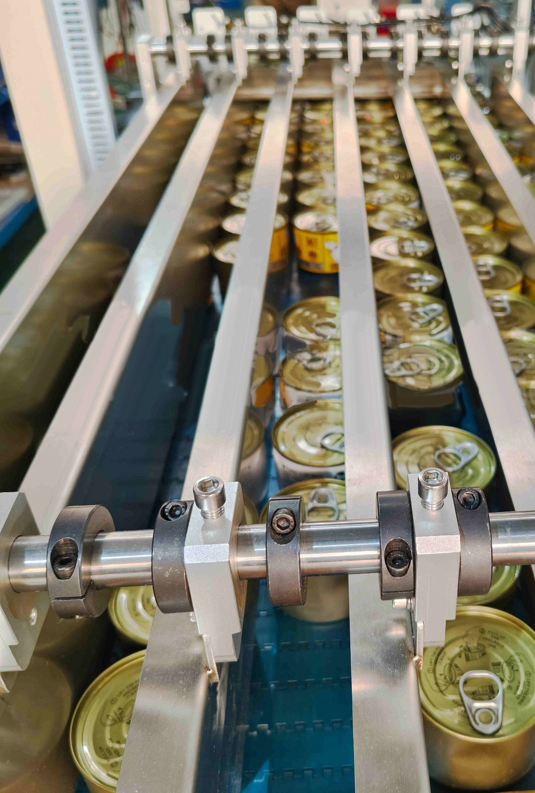 Yes. The integrated sorting module uses sensors (or optional vision systems) to ensure all cans are oriented correctly—such as “label-forward”—before they enter the casing area. It can also detect and reject dented or improperly sealed cans.